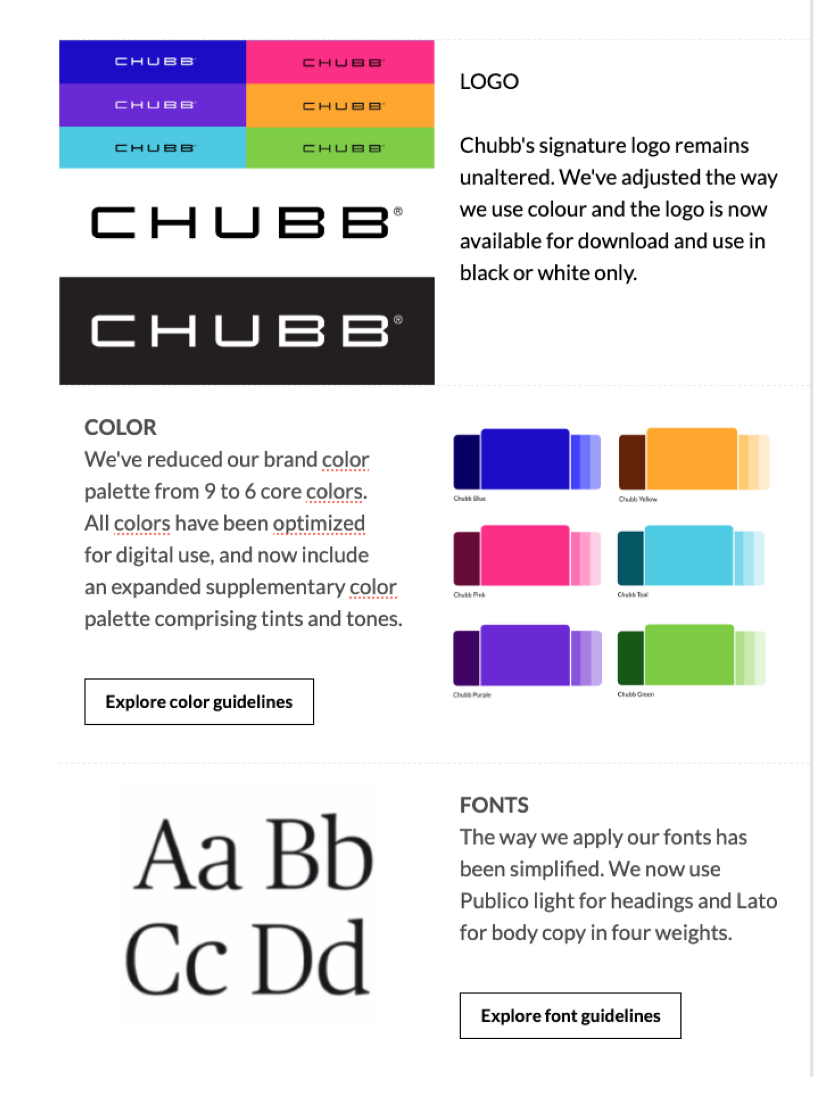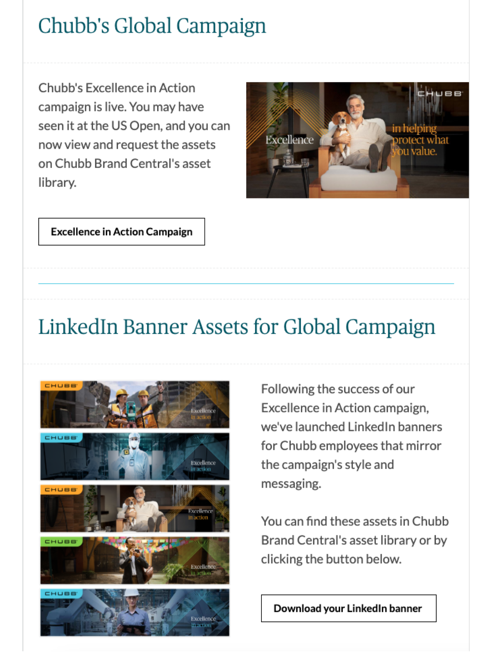 The following excerpts are from an email communication I developed to notify employees of the brand update. We achieved a 66% open rate on this email, which was sent to 16,000 employees.